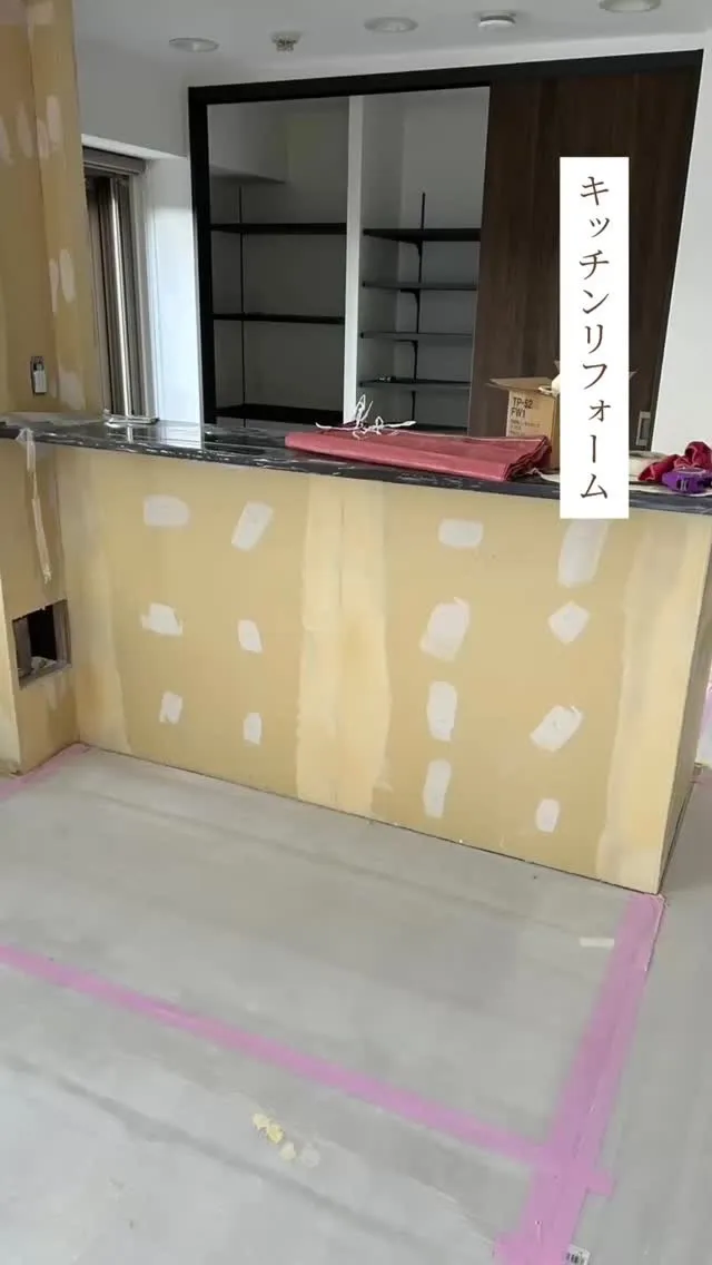 マンションリフォーム④ マンションリフォーム④フローリング貼り完了しました☑️(傷がつかないよう養生中です💦)キッチンの設置も完了です!残りの工事も頑張ります👷👷進捗は随時更新します▶️#マンションリフォーム#フローリング#キ…